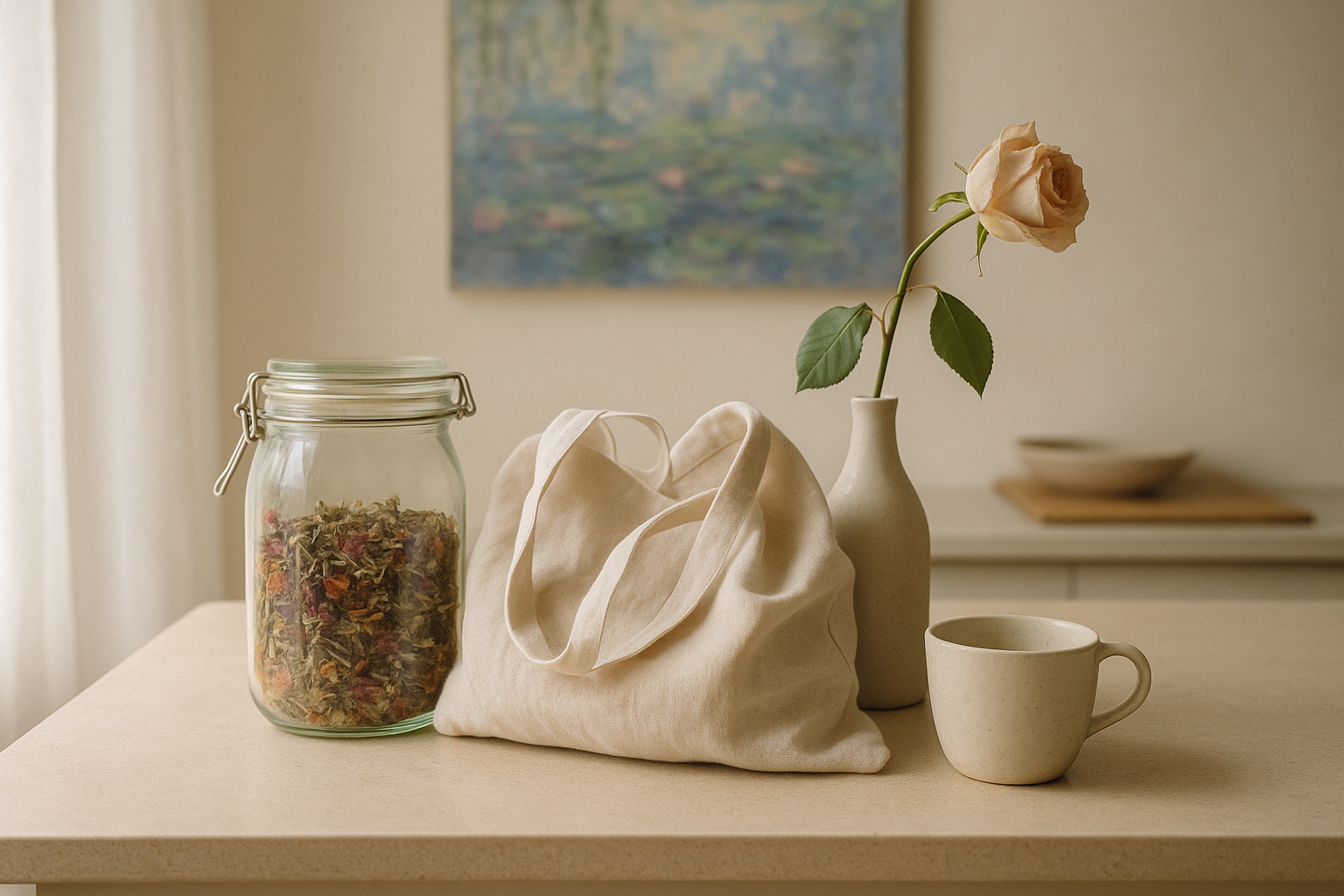 Ook ons huishouden wordt een canvas voor duurzame elegantie. Repareren in plaats van weggooien viert de levensduur van objecten. Een genaaide knoop, een gelijmd meubelstuk – het vertelt een verhaal van zorg en respect. Hergebruik is de kunst van transformatie: een oude fles als vaas, een vintage theedoek als cadeauverpakking. Ontspullen, ten slotte, creëert ruimte en rust. Het is het samenstellen van een curated interieur, waarbij elk item zijn plaats en waarde heeft, vrij van overbodige ballast.